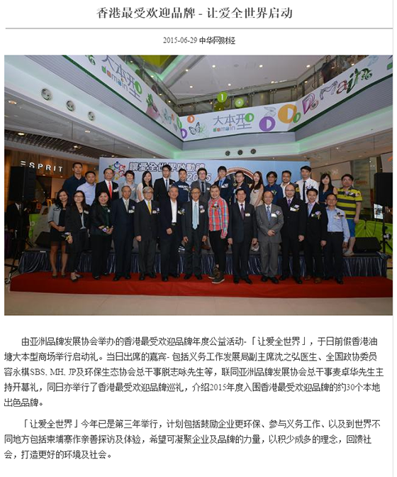 香港最受歡迎品牌 - 讓愛全世界啟動